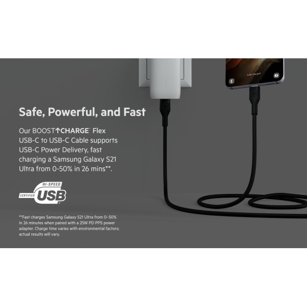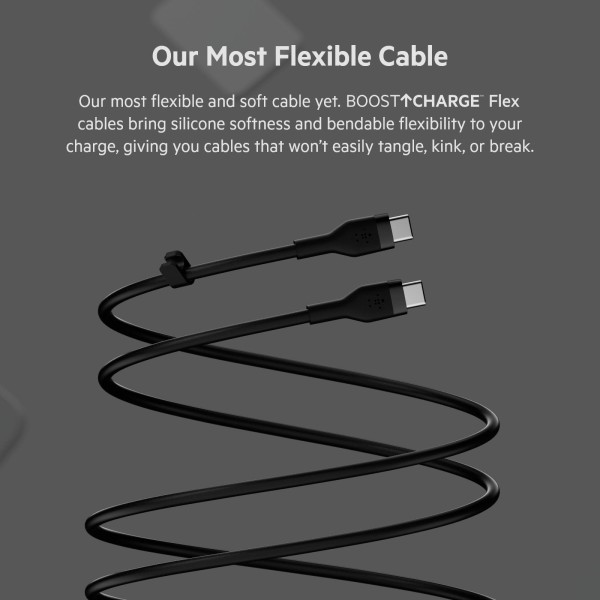 Кабель Belkin USB-С - USB-C силіконовий, з кліпсою, 2м, чорний