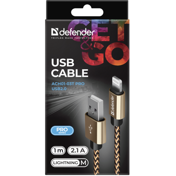 Кабель Defender ACH01-03T USB(AM)-Lighting 1m, 2.1A Gold (87806)