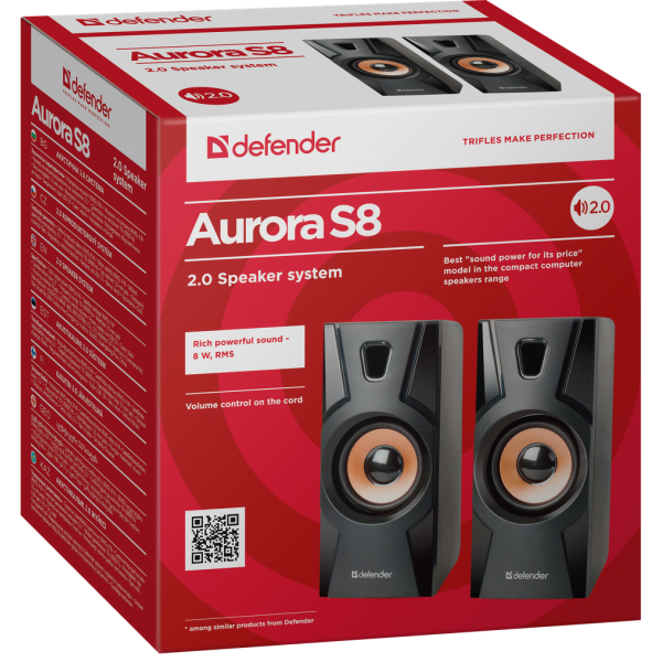 Акустика Defender Aurora S8 Black 2.0, 8 W, USB (65408)