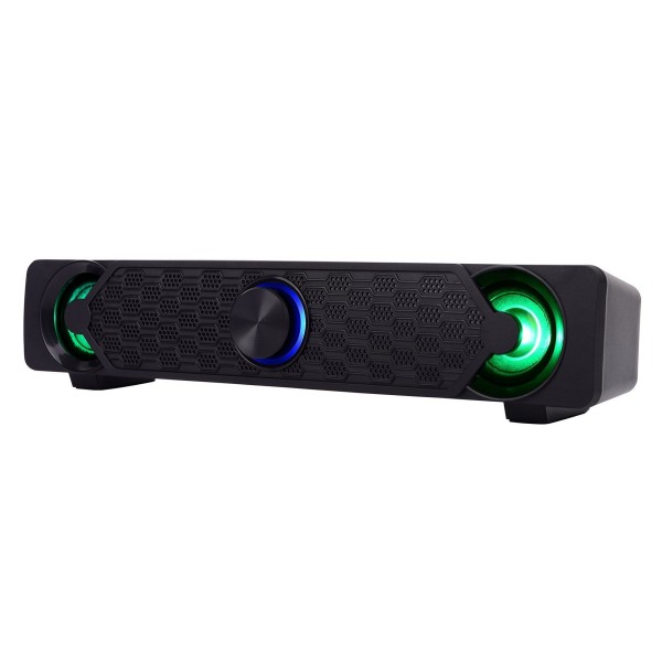Просто під*єднайте кабель мініджек 3.5 мм до джерела звуку та слухайте улюблені треки без зайвого клопоту. За допомогою USB-кабелю вмикається різнокольорова підсвітка. Звукова панель зручно вмикається та управляється за допомогою регулятора. Сучасний дизайн з багатобарвним підсвічуванням, зручний регулятор гучності з вбудованим світлодіодним індикатором стане ідеальним доповненням вашого інтер*єру.