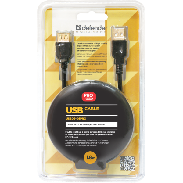Кабель DEFENDER USB02-06PRO USB2.0 AM-AF 1.8м, 2фер, blister