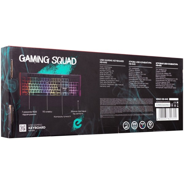 Ігрова клавіатура ERGO KB-645 - стильний і комфортний аксесуар для ігор або набору тексту. Спеціальна конструкція дає можливість зручно розмістити зап*ястя, завдяки чому вони не напружуються і довше не втомлюються. Мембранна клавіатура має 115 клавіш і кнопку контролю гучності, яка дозволяє встановити оптимальний звук.