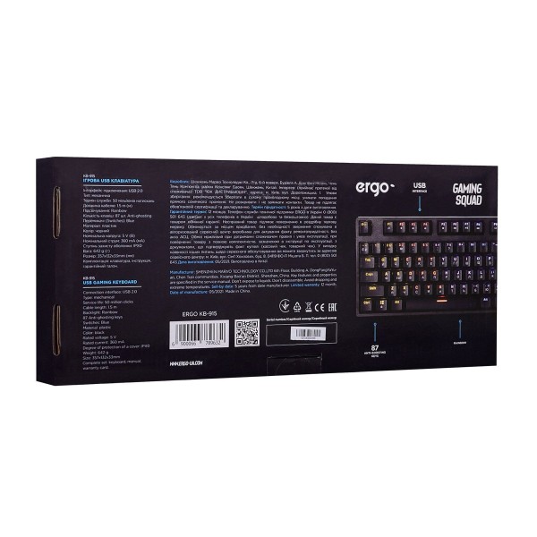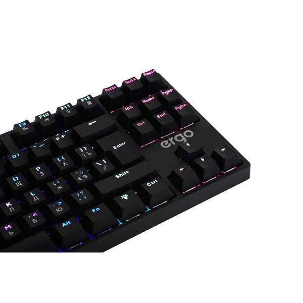 Ігрова клавіатура ERGO KB-915 - відмінний вибір для тих, хто любить динамічну гру. Стильна та компактна, вона займає оптимальний простір на ігровому столі та буде незамінним помічником для початківців і професійних геймерів. Механічна клавіатура оснащена 87 клавішами, які забезпечують комфортну гру або набір тексту.