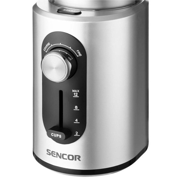 Рівномірний помел виконується завдяки спеціальному тришаровому титановому лезу, яке відмінно справляється зі своїм завданням. Модель SENCOR SCG 3550SS має резервуар на 60 г кавових зерен, яких достатньо для приготування до 12 чашок кави. Електричне розмелювання проводиться з налаштуванням грубості розмелювання кави та кількості чашок. Запобіжник, що захищає від включення кавомолки без кришки, потурбується про вашу безпеку. Нековзні ніжки пристрою зручні та стійкі під час роботи кавомолки SCG 3550SS.