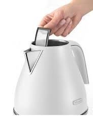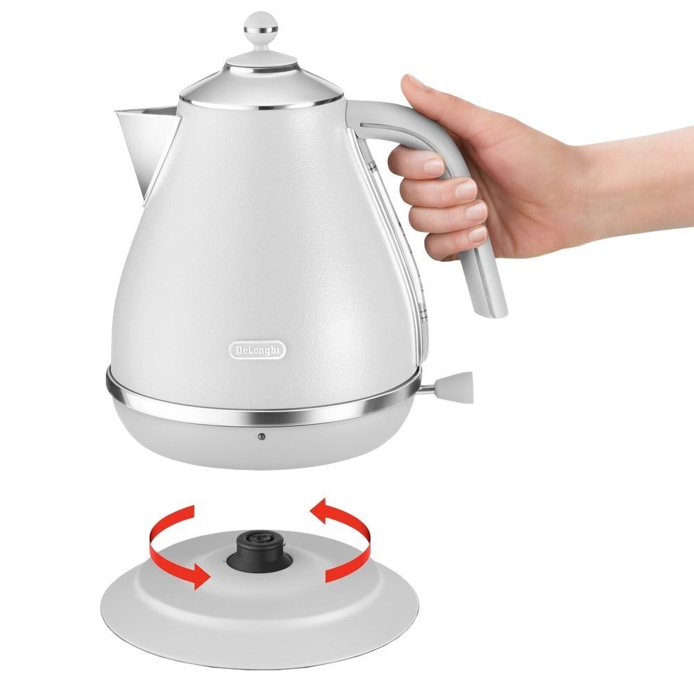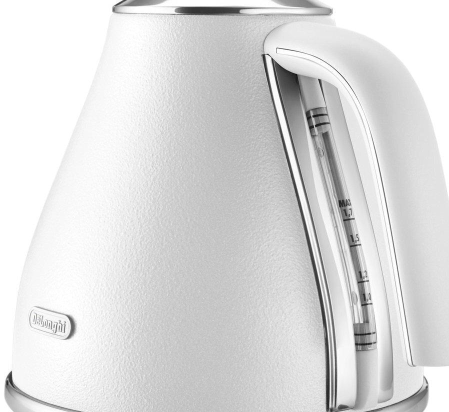 Чайник из дизайнерской серии Icona Elements от итальянского бренда DeLonghi невозможно не заметить. Хромированные элементы устройства гармонично сочетаются с покрытием, внешне похожим на кожу. Белоснежный цвет чайника KBOE 2001 W добавит вашей кухне каплю элегантности.