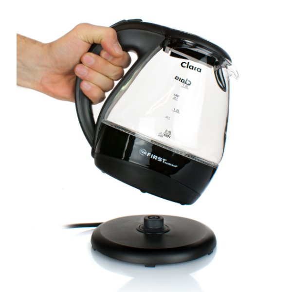 Полезный объем электрочайника First FA 5406-3: 1,5л. Его вполне достаточно для удовлетворения нужд семьи из трех-четырех человек. Потребляемая мощность чайника позволяет вскипятить воду немногим более трех минут. По типу нагревательного элемента, модель относится к дисковому (скрытому) типу. Преимуществом дискового типа над спиральным, является высокая площадь контакта с водой и скорость нагревания. Трубчатый электронагреватель (ТЭН) расположен в днище корпуса.