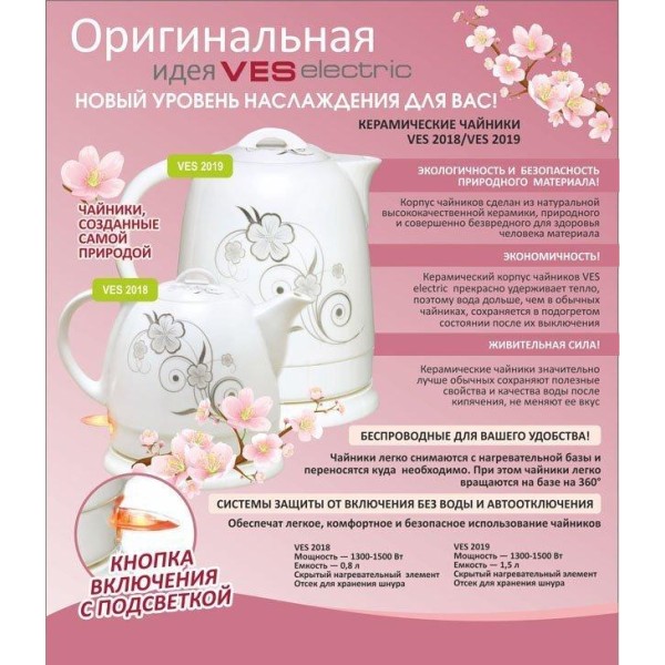 Керамический электрочайник VES 2019