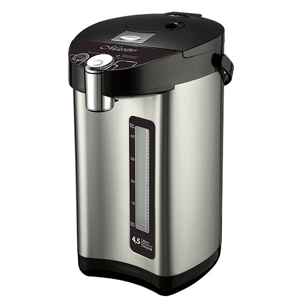 Конструкція передбачає обертання корпусу на 360 °, що робить процес експлуатації термопот максимально комфортним.