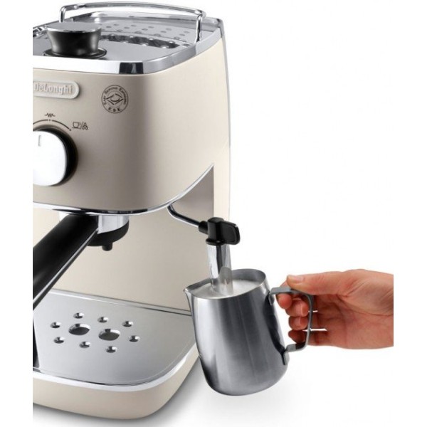 З такою кавоваркою ви можете насолоджуватися і смаком еспресо, що бадьорить, і ніжним капучино. Насадка для спінювання швидко приготує повітряну молочну пінку. Система «Капучіно» - це збивання молока за допомогою пари. Завдяки спеціальному регулятору ви зможете змінювати інтенсивність подачі пари. Придбати DeLonghi ECI341 W за доступною ціною ви зможете у нашому інтернет-магазині.