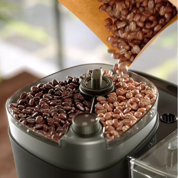 Знімний подвійний контейнер із технологією Aroma Seal дозволяє зберігати та змішувати два види змеленої кави. Він також дозволяє перемикатися між кавою без кофеїну та звичайною кавою. Його легко чистити завдяки щітці, що надається в комплекті, а також повторно наповнювати.