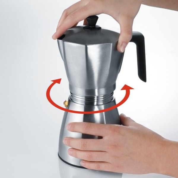Представляемая модель относится к типу гейзерных кофеварок. Мы настоятельно рекомендуем вам купить кофеварку Graef EM 80 ведь она имеет корпус из нержавеющей стали матового оттенка. Благодаря этому она прослужит вам намного дольше, нежели модели с пластмассовым корпусом. Для того, чтобы процесс приготовления кофе, а точнее его разливание было более удобным и безопасным, производитель оснастил ее съемной кружкой, которая имеет термостойкую ручку. Для того, чтобы понять, работает ли она или нет, выключатель имеет контрольную лампочку. Процесс варки будет закончен автоматически, так что вам не придется стоять возле нее, как это необходимо в обычных кофеварках, которые устанавливаются на газовую или электроплиту. Для воды имеется специальный контейнер для воды, оборудованный специальным предохранительным клапаном. Еще одно преимущество данной кофеварки – она устанавливается на специальную подставку, на которой ее можно вращать по кругу – провода не будут вам мешать.
