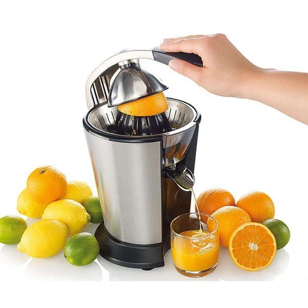 Соковитискач для цитрусових електричний, з притискним важелем, матеріал корпусу - нерж. сталь, робочого вузла – пластмаса. Розроблена компанією GASTRORAG, соковитискач фруктів цитрусового типу HA-720, призначений якраз для вичавлювання соку з цитрусових фруктів - мандаринів, лаймів і т.д.. HA-720 використовує 50/60Гц частотну мережу, що забезпечує 230Вт. HA-720 має розмір, заданий розробником, що дорівнює 330мм по висоті, 215мм по глибині і 330мм по довжині. HA-720 оснащений притискним механізмом, призначеним фіксувати фрукт у соковижималці. Також HA-720 має функцію, що дозволяє подавати сік безпосередньо.