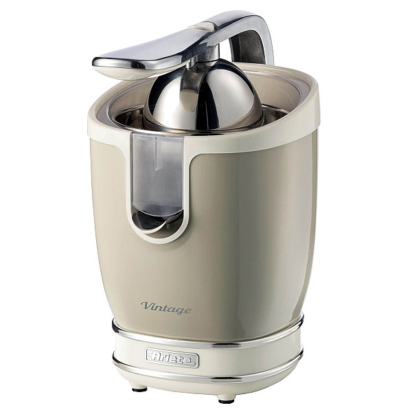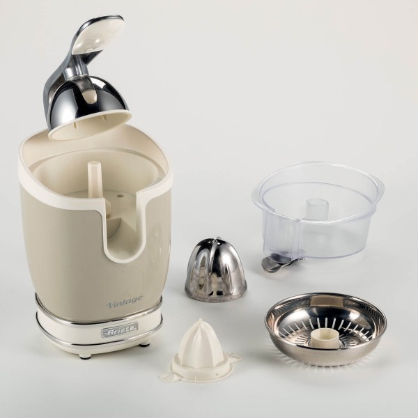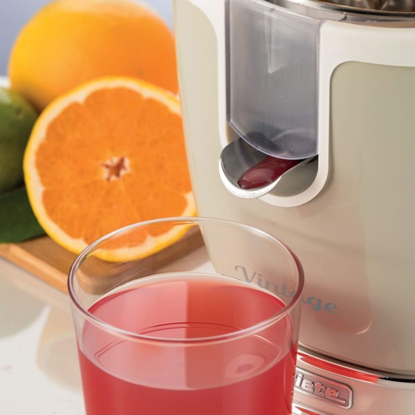 Апельсиновий сік на сніданок ідеально підходить для наповнення вітаміном С, мінеральними солями та енергією. З електричною соковитискачем Ariete Vintage у Вас буде потужний і безшумний соковитискач, який одночасно додасть вашій кухні стиль ретро, типовий для лінії Ariete Vintage Line, з міцним металевим корпусом та хромованим оздобленням. У комплекті 2 конуси для великих та маленьких фруктів: великий конус з нержавіючої сталі та маленький конус, з штифтом для зручної фіксації навіть найменших фруктів. Старовинний цитрусовий соковитискач оснащений важелем тиску, щоб легко роздавити плід, забезпечуючи стиск до останньої краплі.