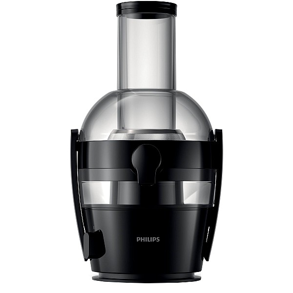 Соковижималка Philips - це перша на ринку модель із центрифугою, яка оснащена функцією попереднього очищення. Наливши воду у штовхач, можна промити прилад зсередини для видалення волокон з кришки, що залишилися, і легшого очищення фільтра.