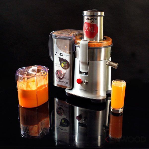 Соковитискач безперервної дії Kenwood JE880 – це чудовий кухонний прилад для приготування соку. Ціна приладу в тому, що завдяки ретельному віджиму в результаті виходить більше соку і менше макухи. Прилад має трилітровий контейнер для макухи, кришка якого очищається самостійно, коли ви митимете сам контейнер.