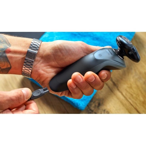 | Додатково | Швидка зарядка 5 хвилин для 1 гоління Технологія батареї: Літій-іонна (Li-Ion) Потужність (в режим очікування): 0,15 Вт Максимальне споживання енергії: 5,4 Вт |