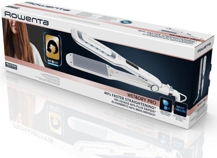 Випрямляч для волосся Rowenta Wet&Dry Pro створений, щоб допомагати вам виглядати бездоганно щодня і не витрачати на укладання багато часу. Відкрийте Для себе зручний і простий у використанні випрямляч, який однаково ефективно працює як на сухому, так і на вологому волоссі, що підсушує рушником. Покриття пластин Nano Ceramic забезпечує повноцінний захист під час укладання, а іонізація розгладжує волосся і надає їм природного блиску.