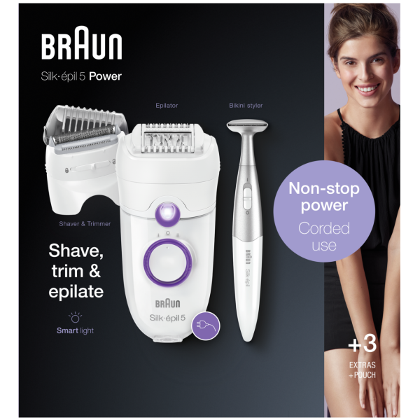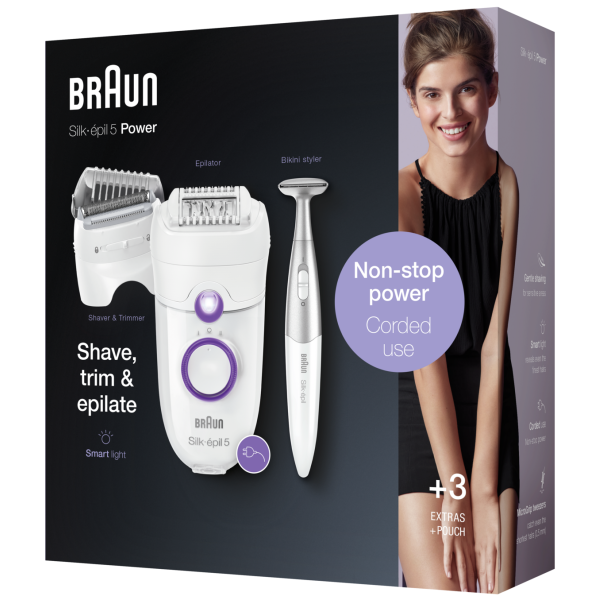 | Braun Silk-épil 585P Безперервне живлення для роботи в будь-який час. |