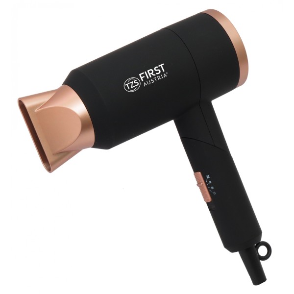 Компактний фен для укладання як вдома, так і у подорожі. Заощаджує місце у шафі, спортивній сумці та поміщається у будь-яку ручну поклажу: компактний фен зі складною ручкою забезпечує оптимальний контроль над укладанням. Завдяки сучасній іонній технології його потужний потік повітря дбайливо висушує навіть густе хвилясте волосся без статичного заряду в найкоротші терміни і зберігає його природний здоровий блиск. Знімна насадка-концентратор дозволяє цілеспрямовано укладати окремі пасма. Є вибір із двох температурних режимів. Додаткову функцію Cool-shot можна використовувати для фіксації зачіски. Підходить для всіх типів волосся.