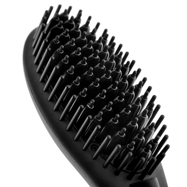 Електрогребінець має керамічне покриття, яке дбайливо впливає на структуру волосся, не викликаючи їх пересушування. Температура розподіляється рівномірно і стайлер плавно ковзає по волоссю, не викликаючи їх ушкодження. Завдяки даній особливості волосся буде блискучим і слухняним.