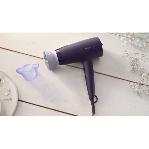 Насадка ThermoProtect з унікальною конструкцією змішує тепле та холодне повітря для дбайливого сушіння волосся. Сушіть волосся швидко навіть при температурі на 15 ° C нижче.