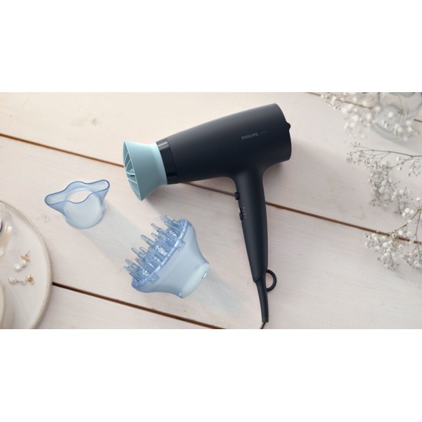 Насадка ThermoProtect з унікальною конструкцією змішує тепле та холодне повітря для дбайливого сушіння волосся. Сушіть волосся швидко навіть при температурі на 15 °C нижче.
