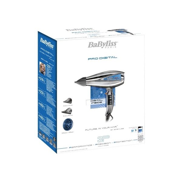 Babyliss із серії Pro Digital відрізняється високоякісними матеріалами та продуманими інженерними рішеннями. Ресурс пристрою становить до 10 000 годин – у 10 разів довше, ніж звичайні фени. Ви отримуєте надійний прилад для догляду за волоссям. Завдяки вдосконаленому нагрівальному елементу при потужності в 2 рази вище, пристрій працює неймовірно тихо. Тепер можна робити укладання в будь-який зручний для вас час, не турбуючи оточуючих.