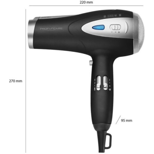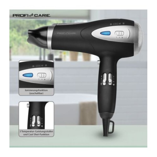 Profi Care PC-HTD 3047 - це фен, завдяки якому Ви подбаєте про своє волосся. Ви досягнете здорового блиску завдяки іонізації, яка захищає волосся від пересихання, ламкості та залучення кліщів та бактерій. Іонізоване повітря, що утворюється в сушарці, також сприяє гарному самопочуттю.