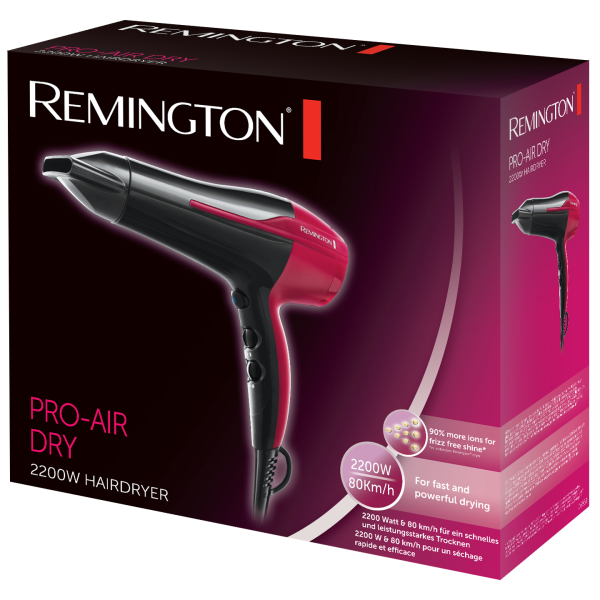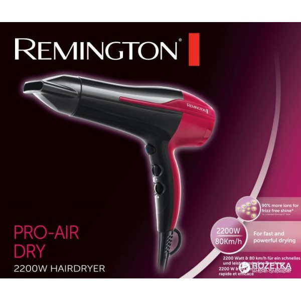 Новий фен D5950 від Remington, потужністю 2200 Вт, гарантує швидке укладання навіть коли абсолютно немає часу. Висока продуктивність з потужністю 2200 Вт і повітряним потоком до 80 км/год. Забудьте про заплутане волосся і насолоджуйтеся шовковистою укладкою. Іонний генератор випускає іони для гладкого, блискучого і здорового волосся. Завдяки керамічній решітці, яка забезпечує рівномірний розподіл тепла по волоссю, ваше волосся буде сушитися швидше. Вибір з 3-х температурних і 2-х швидкісних режимів допоможе вам підібрати потрібні саме вам налаштування. Цей функціональний фен забезпечений функцією подачі холодного повітря для фіксації укладки.