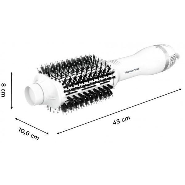 Фен-щітка Rowenta Volumizer Oval Brush CF6130F0. Фен-щітка Rowenta Volumizer - це інструмент для укладання, що кардинально змінює гру, і розроблений, щоб вивести рутину краси на зовсім новий рівень. Відчуйте різницю з потоком повітря потрійної дії, що забезпечує сушіння, що піднімає коріння, одночасно формуючи та збільшуючи природний обсяг волосся, тоді як овальна насадка XL забезпечує швидке сушіння. Насолоджуйтесь прекрасним видом з дня на день завдяки 4 іонним отворам, які постачають мільйони іонів і охоплюють 360 ° волосся, що робить його гладким і шовковистим, і надає блискучий.