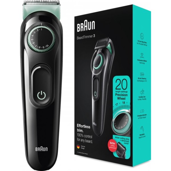 Тример для бороди Braun BT-3321 має велику ріжучу поверхню, захоплюючи та підрівнюючи більше волосся при кожному русі. Надзвичайно гострі леза легко зрізають навіть довге і густе волосся, не витягаючи і не смикаючи його.