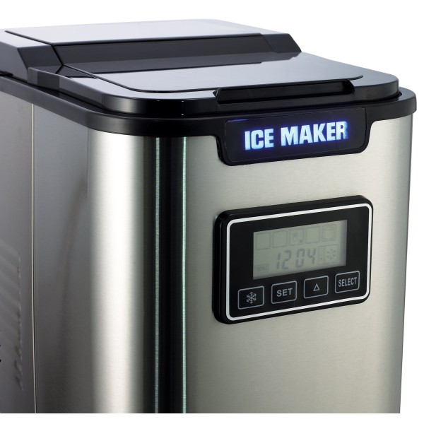 Крім цього, завдяки функції таймера ви можете встановити поточний час доби, а також час автоматичного включення та вимикання льодогенератора. У випадку, коли резервуар для води порожній або бункер для льоду сповнений, світяться відповідні світлові індикатори. Виготовлення льоду при цьому припиняється. Для відновлення роботи необхідно долити води або вийняти частину льоду з бункера та перезапустити обладнання.