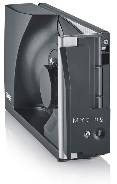 Завдяки 170-міліметровому зубчастому лезу MYtiny забезпечує кращі зрізи з безступінчастим налаштуванням товщини нарізки 0-15 мм. Центральний блок керування оснащений захисним пристроєм увімкнення та блокує зупинку та перемикач при транспортуванні або зберіганні MYtiny. Максимальна висота зрізу складає 150 мм.