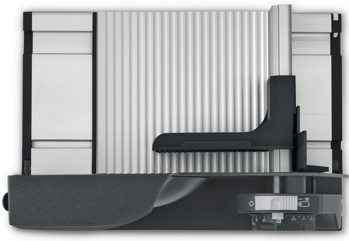Компактний складний слайсер для нарізки GRAEF MYtiny оснащений універсальним зубчастим лезом з нержавіючої сталі діаметром 170 мм і потужним енергозберігаючим двигуном на 45 Вт, що забезпечує низький рівень шуму. Пристрій дозволяє плавно регулювати товщину нарізки в діапазоні від 0 до 15 мм, а також функції автоматичного блокування від дітей, безперервної роботи та імпульсного режиму. Додатково, слайсер оснащений прихованим місцем для кабелю, блокуванням каретки в розкладеному положенні та легко чиститься завдяки високоякісним поверхням, що робить його дуже мобільним та зручним у використанні.