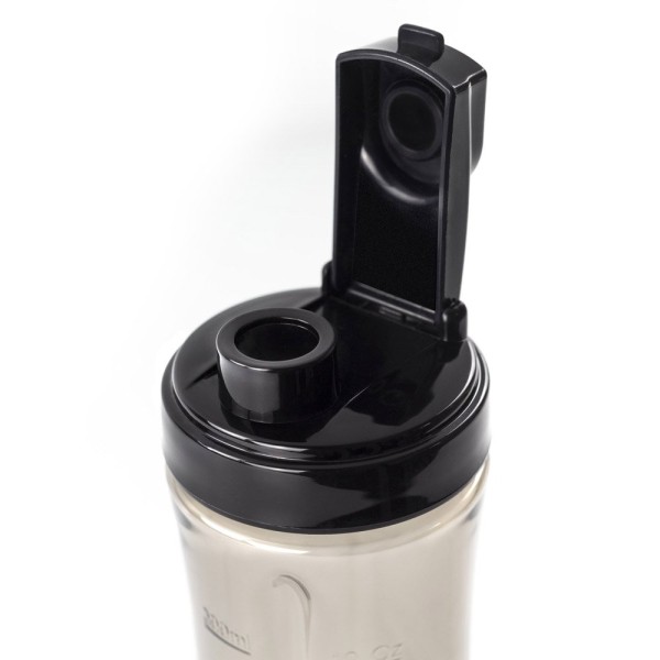 Просто встановіть пластиковий шейкер на прилад (у комплекті поставки включені пляшечки об'ємом 300 та 600 мл), приготувати коктейль та зняти ємність.