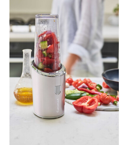 Cuisinart RPB100E – це сучасний компактний блендер, який може стати чудовим подарунком як новачкові, так і досвідченому кулінару. Така модель допоможе суттєво розширити ваші кулінарні можливості та сприятиме удосконаленню ваших навичок кулінарної майстерності. Крім того, такий блендер можна взяти з собою в дорогу або пікнік, щоб змішати свіжий соус або коктейль.
