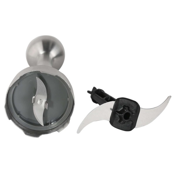 У комплект поставки входять мірна склянка 1,2 л і 3 насадки: подрібнювач із чашею 0,6 л, віночок та ніж із захистом від розбризкування.