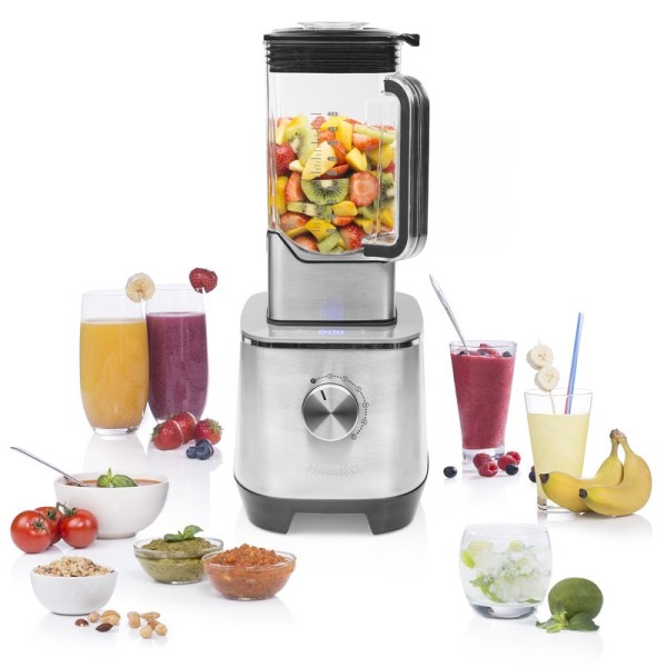 • Потужність, Вт: 2000 • Місткість чаші, л: 2 • Імпульсна функція • Подрібнення льоду • Глечик • Змінна швидкість • Вбудований екран • Тип дисплея: ЖК • Тип: Стаціонарний • Знімна чаша • Колір: Нержавіюча сталь • Неслизьке підставу • Матеріал корпусу : Нержавіюча сталь •