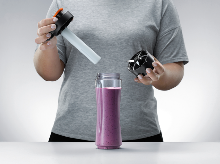 Змішуйте улюблені інгредієнти безпосередньо у пляшці, яку можна взяти із собою. Закрийте кришкою і візьміть смузі із собою, куди б ви не прямували.