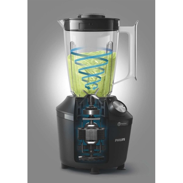 Унікальна система ProBlend ідеально поєднує три технології, спеціально розроблені для отримання однорідної консистенції всього за 45 секунд. Мотор потужністю 600 Вт управляє змішуваним потоком з метою рівномірного розподілу всіх інгредієнтів, а інноваційна спеціально розроблена конструкція леза максимально збільшує площу розрізу. І остання, але не менш важлива особливість: глечик включає борозни унікальної форми, які постійно повертають інгредієнти назад у потік, що змішується.
