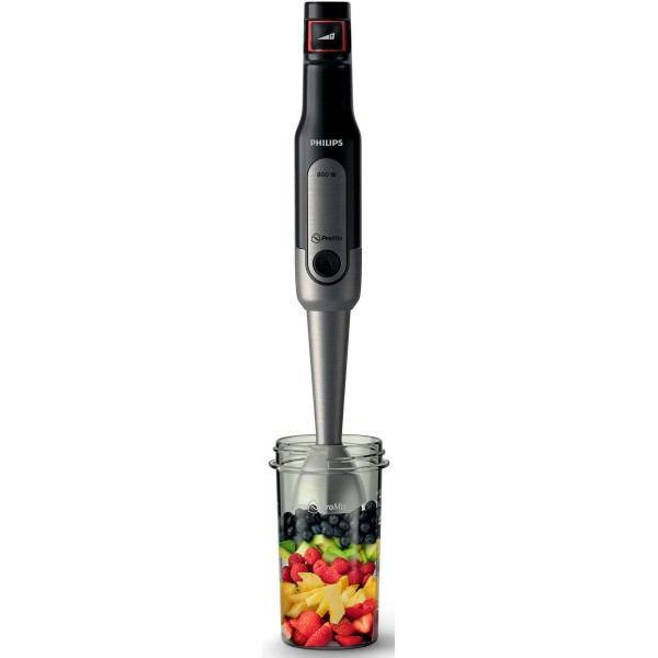 Спеціально сконструйована занурювальна «нога» за технологією ProMix має куполоподібну трикутну форму з хвилею по периметру, що дозволяє більш якісно подрібнити і перемішати необхідні продукти, при цьому максимально виключити розбризкування і утворення грудок. Млинці, омлет, рідкий крем та багато іншого можна приготувати за допомогою додаткової насадки – віночка. Завдяки подрібнювачу, що йде в комплекті, можна приготувати за лічені хвилини фарш, паштет, різноманітні салати, подрібнити горіхи та багато іншого. Для змішування продуктів передбачена спеціальна, мірна склянка об'ємом п'ятсот мілілітрів, яку можна брати з собою в дорогу, оскільки є спеціальна кришка для транспортування.
