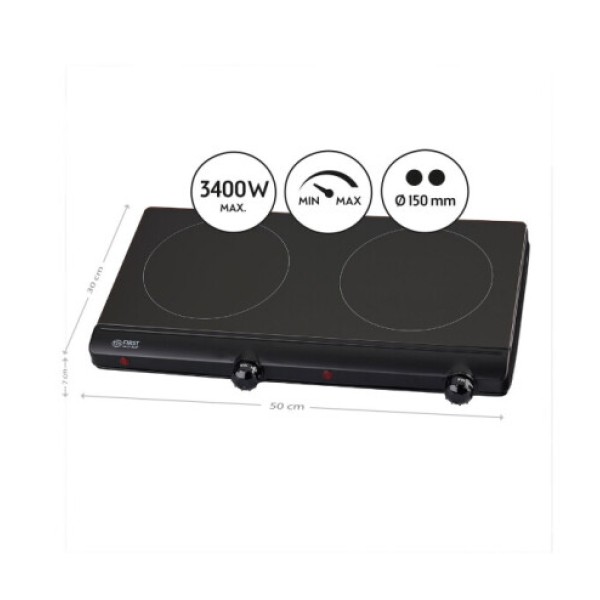 Вдома або в дорозі: готування з потужністю 2500 Вт ще ніколи не було таким простим. Цю подвійну інфрачервону пластину можна побачити всюди. Лаконічний дизайн гармонує зі всіма стилями кухні, а також чудово доповнює красиво накритий стіл. Міцна конфорка із суцільною конфоркою зі склокераміки пропонує достатньо місця для всіх звичайних каструль та сковорідок. Гарний, міцний дизайн сенсаційно гнучкий та безступінчасто регулюється термостатом.