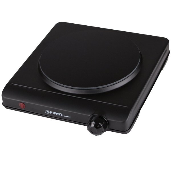 Корпус інфрачервоної електроплити First FA 5096-1 виготовлений з нержавіючої сталі, покритої чорною матовою фарбою.