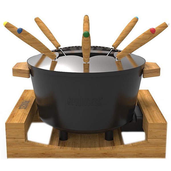 Princess 173025 розкішний набір для фондю з натуральним бамбуковим корпусом та великою каструлею розрахований на 8 осіб.