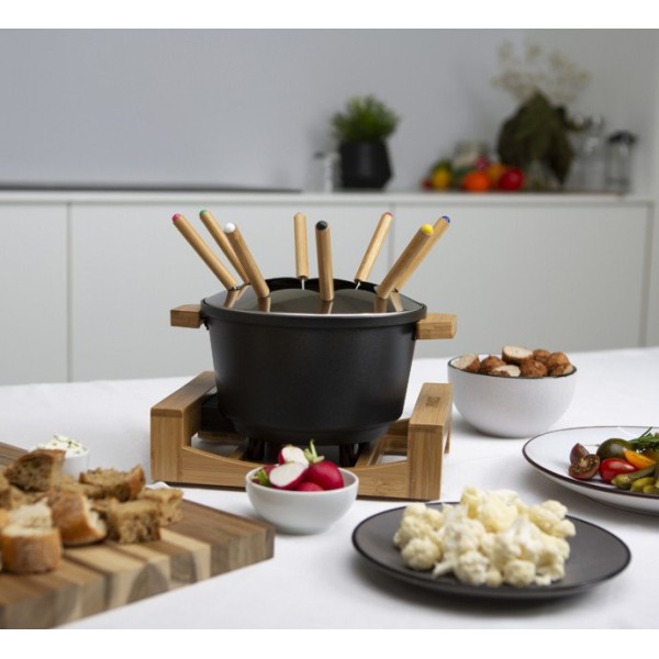 Бамбук - це міцний і зносостійкий матеріал, який не тільки гарний на вигляд, але і залишається прохолодним на дотик, так що ви легко зможете переміщати фондюшницю.