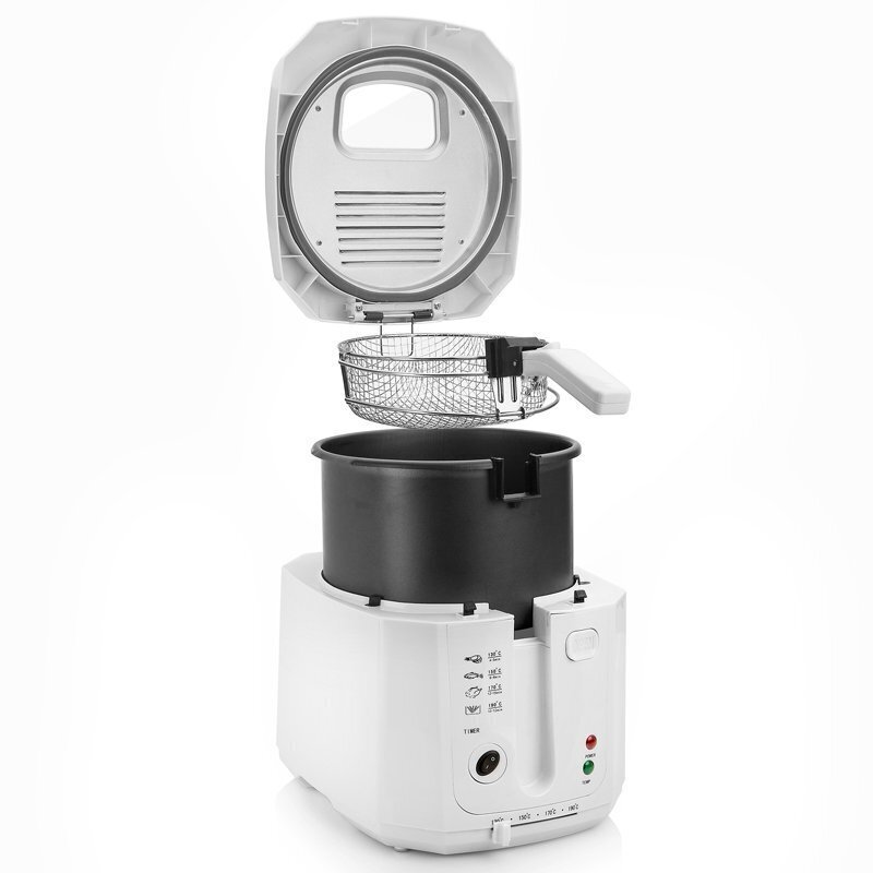 Фритюрниця Tristar FR-7025 має потужність 1800 Вт, компактні розміри і при цьому досить велику місткість для своїх габаритів. Максимальне завантаження олії – 2,5 літра, при цьому допустима вага продуктів, що завантажуються, не повинна перевищувати 600 грам. Під час приготування кришка фритюрниці захищає користувачів і кухонний простір від бризок олії, а отже, і від опіків. Ви отримаєте рум'яні продукти і при цьому не потрібно буде очищати плиту та кухонний простір від жиру та олії. Термостат дозволить відрегулювати температуру виготовлення від 150 до 190 градусів. Кошик для продуктів - знімний, його легко мити і чистити. У корпусі передбачено оглядове вікно, яке дозволить відстежувати процес приготування. Габаритні розміри - 25 х 34 х 30 см.