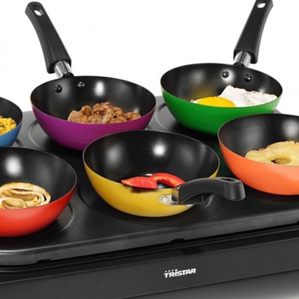 Гриль має компактну конструкцію, завдяки чому його зберігання не стане проблемою. На робочій поверхні він також займе зовсім небагато місця. Корпус приладу виготовлений із пластику. Поверхня для смаження має прямокутну форму і покрита антипригарним шаром. Прилад має індикатор роботи. Тут передбачено один температурний режим 250 градусів. Гриль укомплектований шістьма невеликими сковорідками WOK. Яскраві сковорідки не лише приготують швидко та якісно, вони піднімуть настрій, оживлять та прикрасять зону приготування. Спеціальна форма сковорідок дозволяє їм розігріватися майже миттєво, а при інтенсивній тепловій обробці продукти готуються швидше, зберігаючи корисні та поживні властивості.