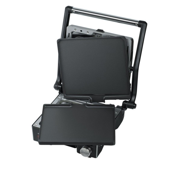 Контактный гриль STEBA FG 55 – удобное и практичное современное устройство для двухстороннего равномерного поджаривания овощей, мяса, рыбы и других продуктов. Данная модель может использоваться как контактный гриль (пластины соприкасаются с продуктами) или как барбекю (гриль открыт, а образуемая при этом габаритная жарочная поверхность позволяет одновременно готовить множество продуктов). Конструкция гриля позволяет равномерно прожаривать различные по величине куски рыбы или мяса. Для сбора излишков жира предусмотрен специальный съемный контейнер.