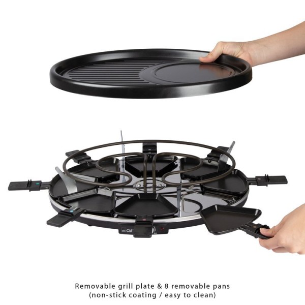 • Потужність, Вт: 1400 • Cool Touch корпус • Для гриля та підсмажування • Знімна решітка для гриля • Гриль та сковорідки з антипригарним покриттям (легко миються) • 8 сковорідок • 8 дерев'яних лопаток • Безперервно регульований термостат • Світловий індикатор • Площа гриля: 40,5 х 30 см • Надійна стійка завдяки прогумованим ніжкам •