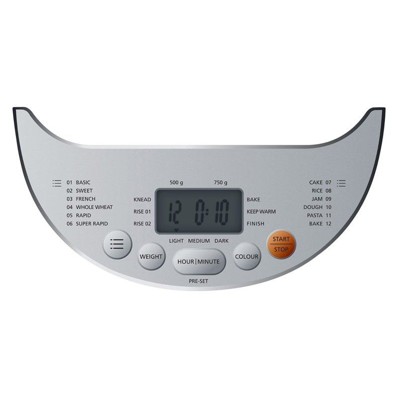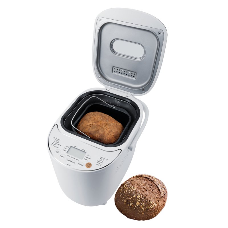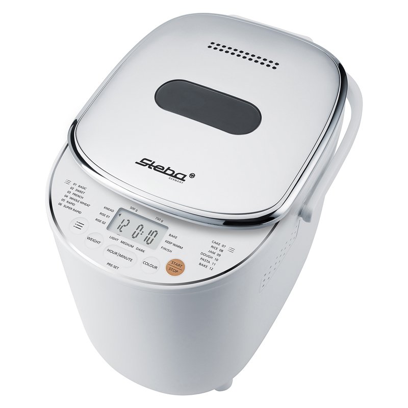 Мощность, Вт: 540 • Хлебопечка для вкусного домашнего хлеба, пирожных, джема и многого другого • 12 автоматических программ • Регулируемый вес (500, 750 г) и степень подрумянивания (светлый, средний, темный) • Съемный противень с антипригарным покрытием • Сенсорное управление с широким дисплеем • Регулируемый таймер и отложенный старт до 13 ч • Крышка со стеклянным окном • Автоматическое поддержание тепла до 1 ч • Вкл. мерная чашка, мерная ложка и рецепты •